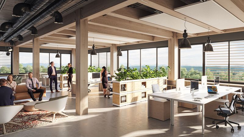 In der Timber Factory werden allein in der Holz-Hybrid-Tragkonstruktion rund 8.000 Kubikmeter Holz verbaut, wodurch dauerhaft rund 8.000 Tonnen CO2 gebunden werden. Darüber hinaus wird der Werkstoff Holz in der Fassadenverkleidung und im Innenausbau großflächig eingesetzt. Verteilt auf vier Gebäude sind in der Timber Factory rund 27.600 Quadratmeter vermietbare Bürofläche vorgesehen. Mehr als 24.000 Quadratmeter stehen den Mietern in zwei Baukörpern für Gewerbe- und Produktionsflächen zur Verfügung. 3.350 Quadratmeter Einzelhandels- und Gastronomieflächen runden das Angebot ab. Erste Flächen sollen bereits Ende 2026 bezugsfertig sein.